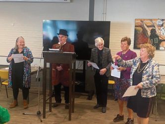 Twello- Driekwart van de leden was op 22 november aanwezig bij het 10-jarig jubileum van de Ouderen Vereniging Twello/Terwolde waarvan er zelfs nog 10 leden bij waren van het eerste uur. De middag werd gevuld met medewerking van Fredde Forcht, die als opperstalmeester de gasten welkom heette, ze een fijne middag wenste en ze op het hart drukte vooral rustig te blijven.