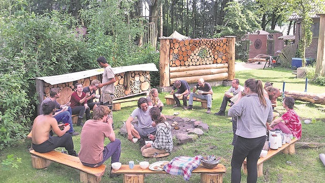 TEUGE- Blijdschap en een gevoel van vrijheid overvallen je als je het tuinhek van leefgemeenschap Eco Tribe binnenloopt en ineens sta je in een onwerelds paradijsje. Een gigantische totempaal, door Mark gemaakt van verwarmingsbuizen en kranen, heet je welkom. Je struikelt over ondefinieerbare objecten, tuinslangen, gieters en andere gebruiksvoorwerpen. In deze plattelandssfeer houdt men van graven, spitten en wroeten. Hier staat men met rubberlaarzen in de modder en snuift men met rode wangen de buitenlucht op. Veel energieën zijn hier voelbaar en alle bewoners zijn vergroeid met de natuur.