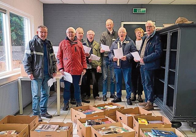 Voor mensen die graag lezen of onderzoeken doen: De samenwerking met het Brummens Mannenkoor (BMK) heeft – naast het zingen - afgelopen week nl. ook geleid tot de inrichting van een behoorlijke boekendependance. Er is nu keus uit meer dan 1.000 boeken. Deze boeken zijn overzichtelijk gesorteerd en kunnen door de bezoekers voor een zeer laag prijsje geleend worden. De voorraad wordt regelmatig ververst. Deze start werd natuurlijk met een zangmomentje gevierd (zie foto).