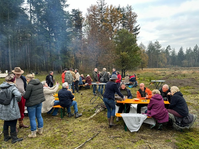 Voorst- Op zondag 10 november vond een bijzonder evenement plaats op landgoed Beekzicht. Meer dan 40 gasten genoten van een herfstdiner van lokale producten in de buitenlucht. Als locatie was gekozen het Gagelven. Het hoogveentje dat in het vrij droge bosgebied ligt spreekt veel mensen uit de omgeving tot de verbeelding. Hoe bijzonder daarom ook om hier een keer te mogen dineren.