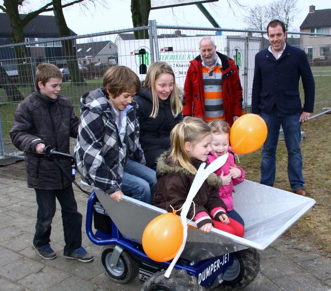 Voorst- (Speciaal voor de start van de aanleg van het nieuwe schoolplein stelde Ter Riele een elektrische kruiwagen ter beschikking en die moest natuurlijk worden uitgeprobeerd) Na bijna 1 jaar voorbereiding hebben de kinderen van OBS De Wiekslag De Wiekslag op vrijdag 2 maart het startsignaal gegeven voor de verbouwing van het schoolplein. Hovenier Ter Riele, die de metamorfose gaat realiseren, had voor deze gelegenheid een elektrische kruiwagen ter beschikking gesteld.
