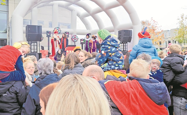 Zoals de laatste jaren gebruikelijk stroomde het Stationsplein al ruim voor de aankomsttijd vol met ouders en hun kroost om de Sint te verwelkomen. De stemming zat er goed in, zeker door het Pietenorkest die jong en oud vermaakte met capriolen, het uitdelen van pepernoten en een keur aan Sinterklaasliedjes.