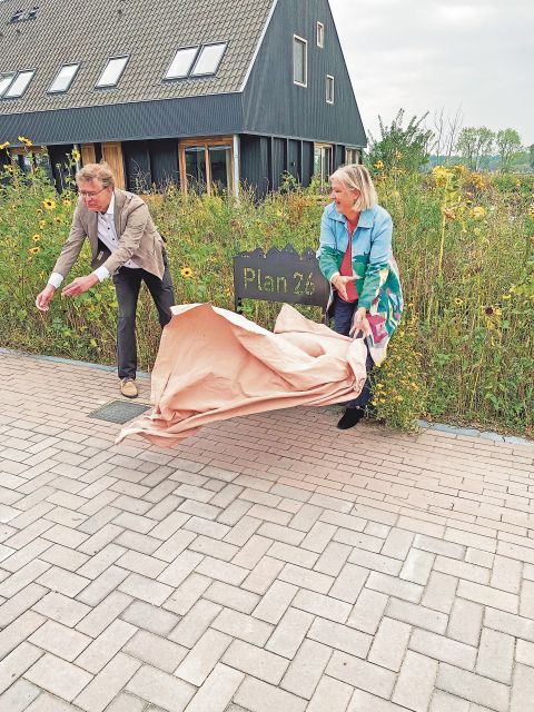 Bianca en Hanneke stralen tijdens de opening. Hun motivatiebrief schreven ze “uit het hart”. Bianca: “We zochten een plek om buiten te wonen, maar niet geïsoleerd. Plan26 bood precies dat.” Hanneke vult aan: “We hebben de ruimte om zelf te verbouwen, en voelen de verbondenheid met de klei en de boomgaard.”