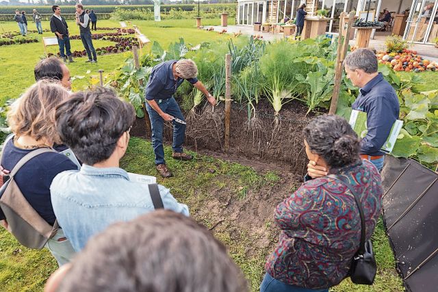 “Een medewerker van Vitalis geeft uitleg over het bodemleven en de interactie in wortelgestel van diverse groenten.“
