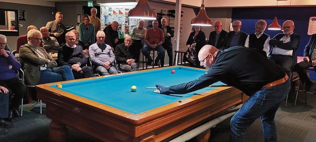 Naast de kunsten van René, en de speech van penningmeester/ vicevoorzitter Carel Braakman, werd er door de leden onder het genot van wat drankjes en hapjes geklonken op weer een gezellig jaar vol biljartplezier en ontmoeting.