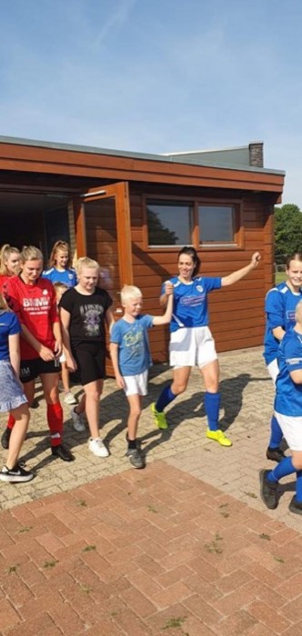 Terwolde- De afdeling jeugd van de sportvereniging heeft de handen in elkaar geslagen, de krachten gebundeld en met veel plezier het sportseizoen geopend. Afgelopen zondag, tijdens de eerste voetbal wedstrijden van dames en heren 1 op het sportpark de Woldermarck, hebben de voetballers en dansers van de bruisende jeugdafdeling er een feestje van gemaakt. De jeugdleden liepen hand in hand mee het veld op, om de voetbal dames en heren een goede boost te geven om deze eerste wedstrijd van het seizoen optimaal aan te vliegen. S.V. Terwolde heeft op deze zondagmiddag laten zien hoe fijn het is om bij de vereniging betrokken te zijn. Iedereen gezellig samen van jong tot oud.